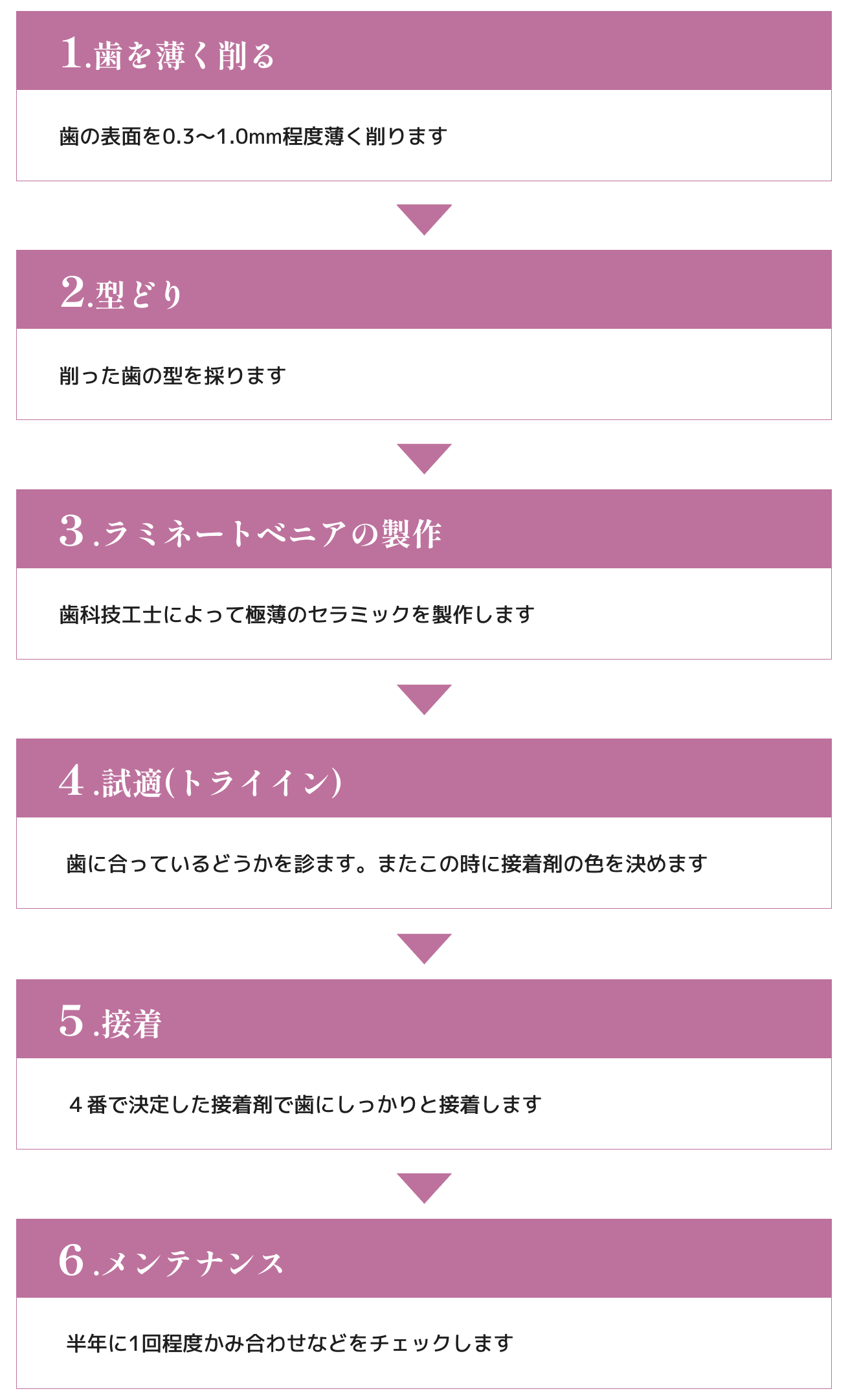 ラミネートベニアの手順は下記の通りです。